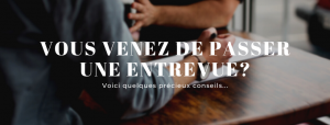 Finalement, si tu es les conseils indiqués, il est clair que tu sauras te démarquer des autres candidats potentiels. Plusieurs personnes n’envoient jamais de courriel post-entrevue, alors démarque-toi, envoie un courriel qui pourrait te permettre d’obtenir le poste de rêve que tu souhaites obtenir.